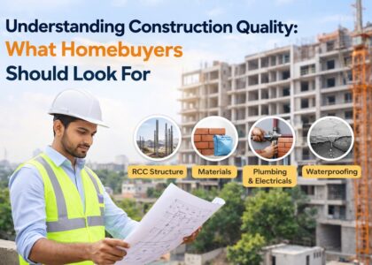 Inspect the construction materials used, RCC structure, flooring, doors, windows, electrical fittings, and plumbing. Quality construction ensures safety, durability, and lower maintenance costs in the long run.